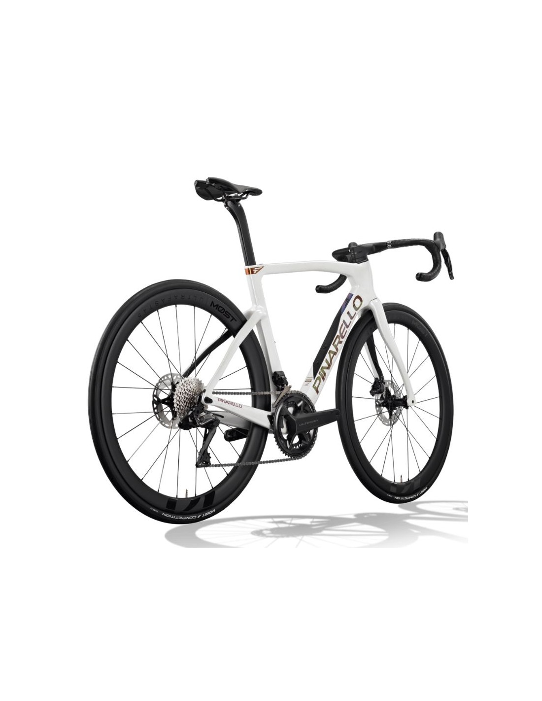Configurada con los grupos que definen el ciclismo moderno, como el Shimano Ultegra Di2 de 12v, la F7 asegura una sincronización electrónica perfecta. En nuestro taller, realizamos una Inspección de Banco a cada unidad, optimizando la micro-indexación del cambio y verificando los pares de apriete exactos para que tu Pinarello sea una extensión de tu pensamiento.